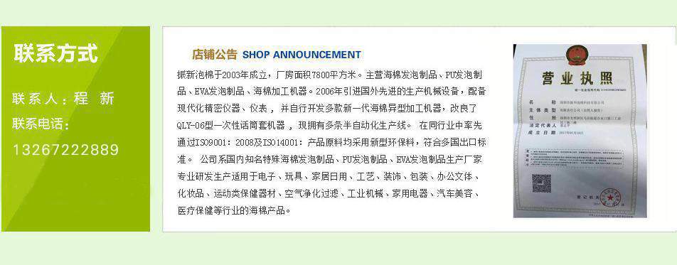 深圳市振新泡棉科技有限公司于2003年成立,廠房面積7800平方米。主營海棉發(fā)泡制品、PU發(fā)泡制品、EVA發(fā)泡制品、海棉加工機(jī)器。2006年引進(jìn)國外先進(jìn)的生產(chǎn)機(jī)械設(shè)備,配備現(xiàn)代化精密儀器、儀表 , 并自行開發(fā)多款新一代海棉異型加工機(jī)器,改良了QLY-06型一次性話筒套機(jī)器 , 現(xiàn)擁有多條半自動化生產(chǎn)線。 我們擁有一批經(jīng)驗(yàn)豐富的工程技術(shù)人員和高級管理人員,在同行業(yè)中率先通過ISO9001:2008及ISO14001:產(chǎn)品原料均采用新型環(huán)保料,符合多國出口標(biāo)準(zhǔn)。 公司系國內(nèi)知名特殊海棉發(fā)泡制品、PU發(fā)泡制品、EVA發(fā)泡制品生產(chǎn)廠家,專業(yè)研發(fā)生產(chǎn)適用于電子、玩具、家居日用、工藝、裝飾、包裝、辦公文體、化妝品、運(yùn)動類保健器材、空氣凈化過濾、工業(yè)機(jī)械、家用電器、汽車美容、醫(yī)療保健等行業(yè)的海棉產(chǎn)品。 產(chǎn)品的類型如:高密度聚酯海棉、普通海棉、異型定型海棉、防火/阻燃海棉、高回彈/慢回彈海棉、過濾網(wǎng)狀海棉、EVA玩具禮品、PU發(fā)泡定型玩具禮品等等。產(chǎn)品名稱如:耳機(jī)/話筒KTV海棉套、海棉圓球、洗刷海棉、吸水海棉、木漿海棉、化妝海棉、相機(jī)海棉、墨盒海棉、壓縮海棉、橡膠海棉、粗細(xì)孔過濾海棉、波峰隔音海棉、醫(yī)用海棉、海棉枕頭、包裝防震海棉、1mm厚海棉、電子/醫(yī)用海棉棉簽、EVA球、EVA智力拼圖、EVA鑰匙扣、PU座墊、PU公仔、PU球類等等。 我們還獲得多家國際知名廠商的授權(quán)資格,代理多品種家庭用品。 產(chǎn)品多年來一直銷往全球,深受廣大用戶和客商的青睞。